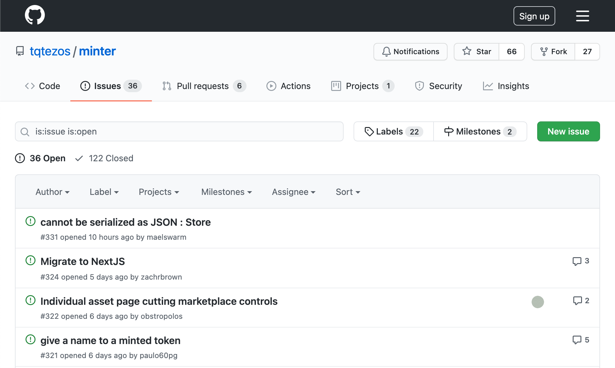 If you see an issue on OpenMinter, refer to github.com/tqtezos/minter.