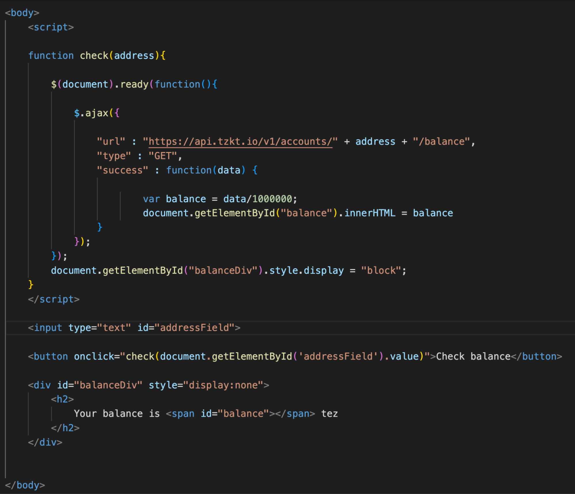 Now we need to add a field for entering the user's address and tweak the check() function to insert it into the API request.