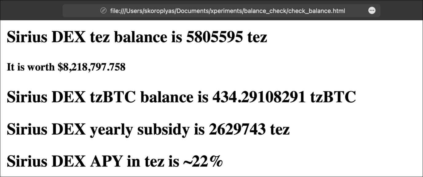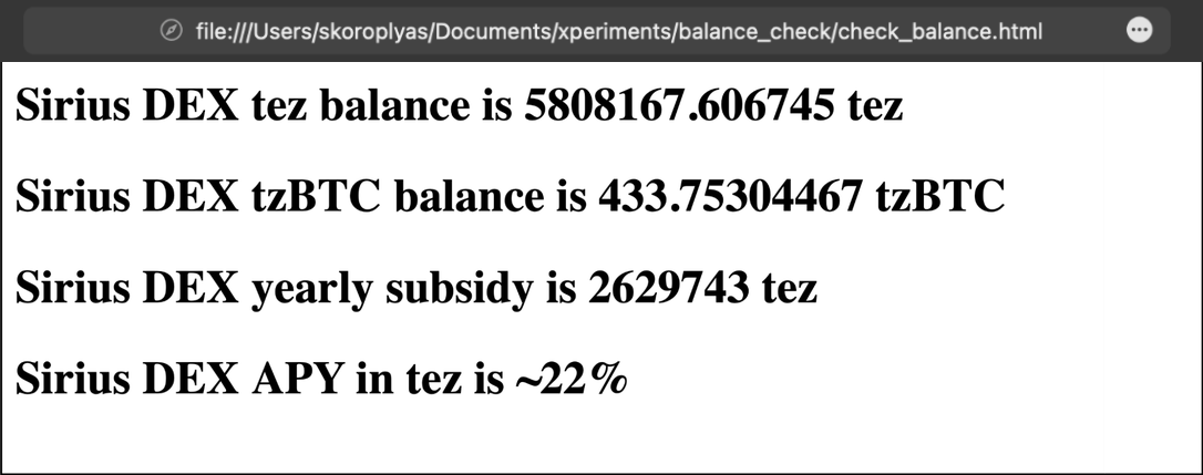 It remains to find out the current value of assets in Sirius DEX and the value of subsidized mav for the year and divide these values, which would be the annual return or APY.