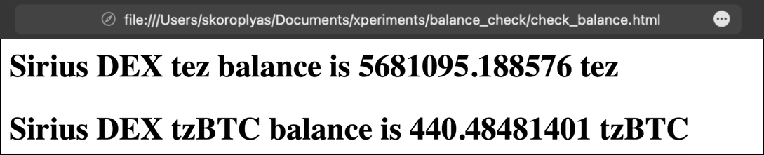 First, we are interested in the balance of Sirius DEX, particularly how much the contract has mav and wBTC. We will receive these numbers from the indexer.