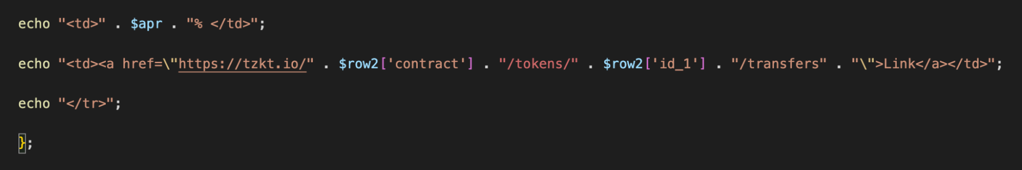 Finally, let's add the "Link to Token" column to the table, and below the function, add a line with a link to MvKT. The structure is as follows: