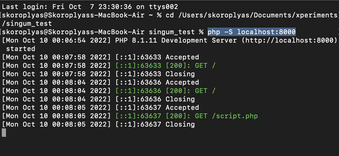First, you need to install PHP according to the instructions. Then create a folder in which we will store the script to display data from Signum, for example, signum_test. After that, open a terminal, go to the folder and run the command: