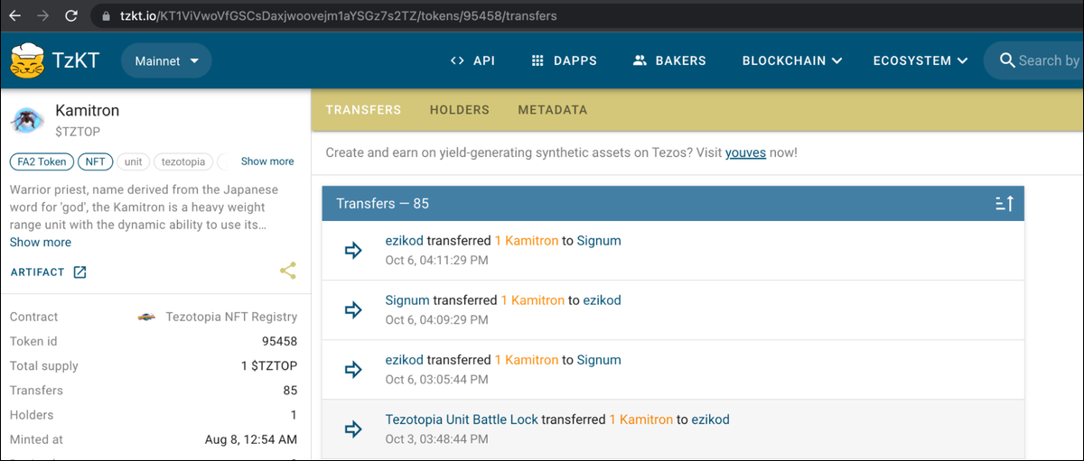 mvkt.io/ + contract address + /tokens/ + token id + /transfers