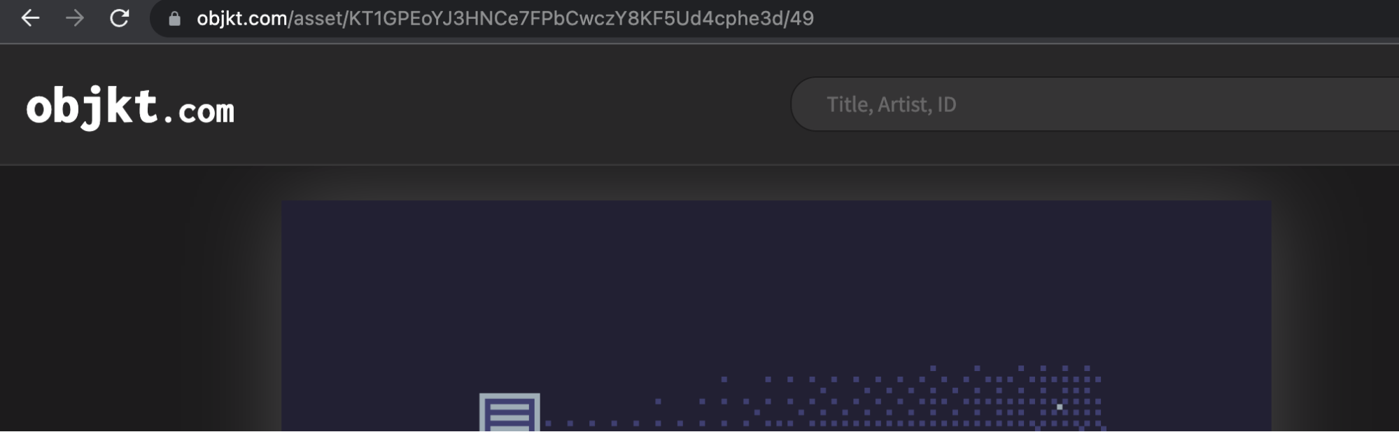 The NFT link on Objkt.com is simple: it consists of objkt.com/asssets/, contract address, and token id.