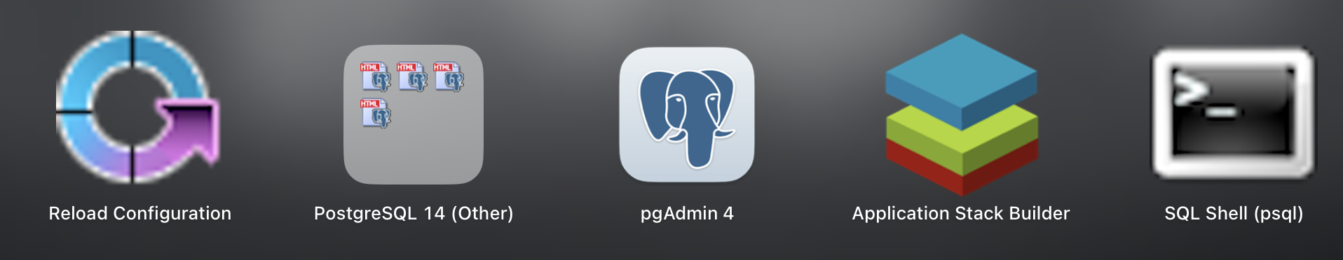 After installation, several Postgre-related applications will appear on the computer. We will need pgAdmin, a graphical interface for working with databases, and SQL Shell, a shortcut for working with PostgreSQL in the terminal.
